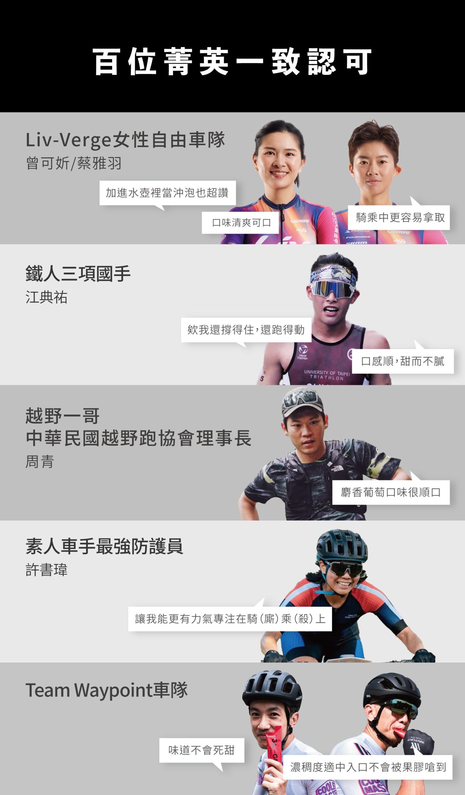 ・產業首創!慢碳新概念:六大複合型碳水,易消化,吸收效率更佳,進而提供續航持久的能量供應。