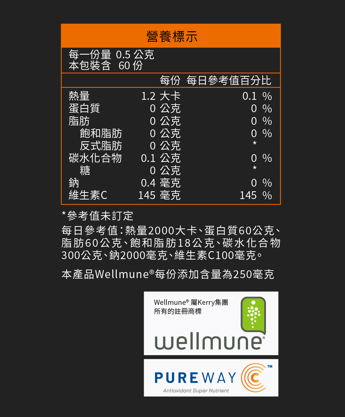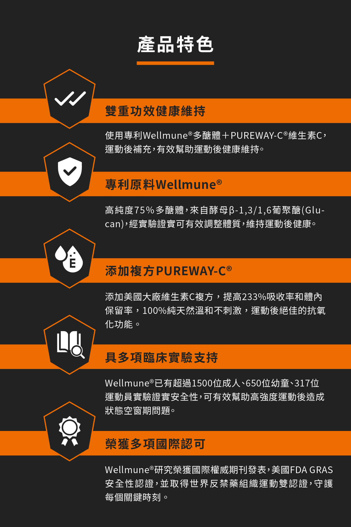 ✔添加Wellmune® 酵母β-葡聚醣與PUREWAY-C®維生素C。